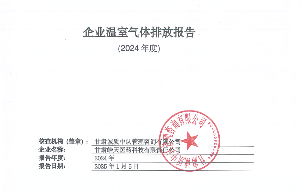 碳足跡核查報告--甘肅皓天醫(yī)藥科技有限責(zé)任公司